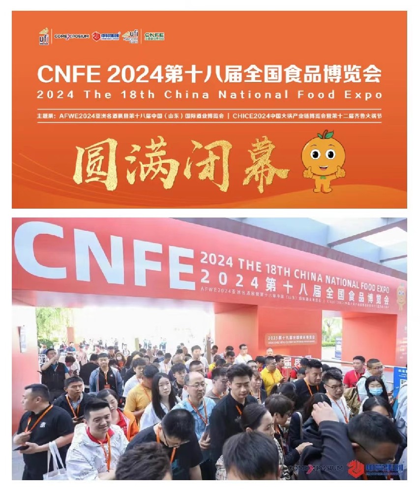 5月12日下午,CNFE2024第十八屆全國(guó)食品博覽會(huì)(以下簡(jiǎn)稱第十八屆全國(guó)食品博覽會(huì))【主題展:AFWE2024亞洲名酒展暨第十八屆中國(guó)(山東)國(guó)際酒業(yè)博覽會(huì)、CHICE2024中國(guó)火鍋產(chǎn)業(yè)鏈博覽會(huì)暨第十二屆齊魯火鍋節(jié)】在山東濟(jì)南·山東國(guó)際會(huì)展中心圓滿閉幕。本屆展會(huì)由法國(guó)高美艾博展覽集團(tuán)、山東省食品工業(yè)協(xié)會(huì)、山東省火鍋餐飲協(xié)...