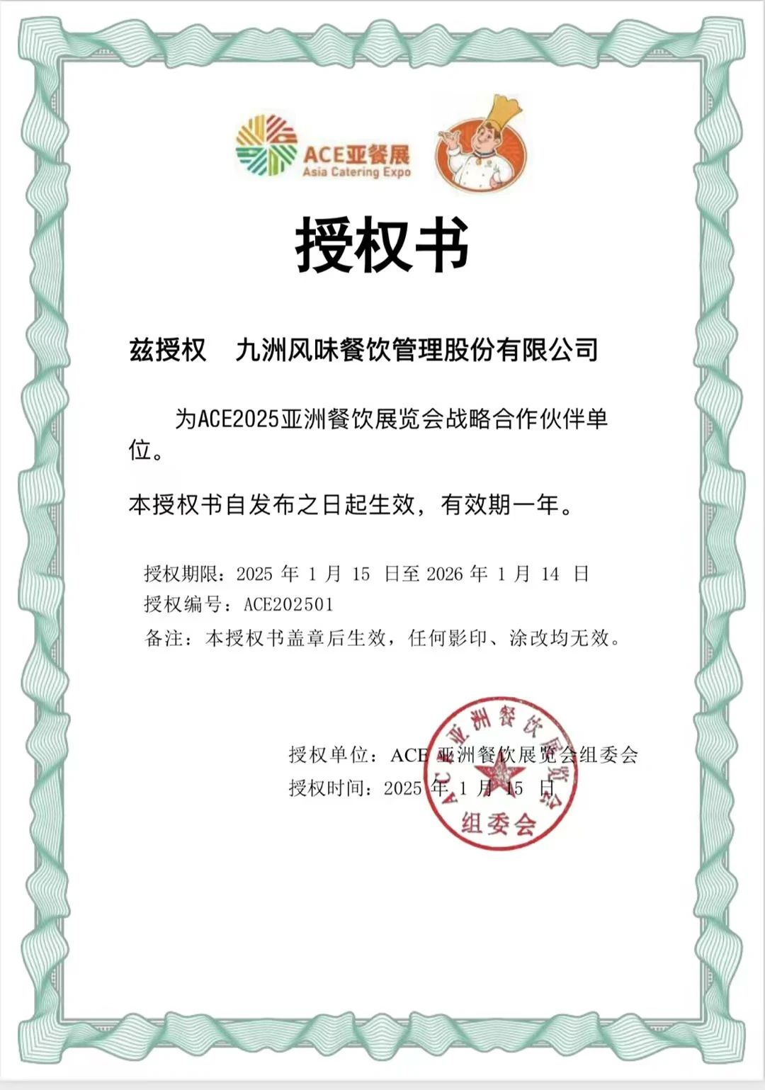 1月19日,ACE亞洲餐飲展覽會(huì)(簡稱ACE亞餐展)組委會(huì)一行到訪九洲風(fēng)味餐飲管理股份有限公司(簡稱九洲風(fēng)味)。雙方就共同做大做強(qiáng)ACE亞餐展達(dá)成共識(shí),并將在ACE2025第三屆亞洲餐飲展覽會(huì)(簡稱ACE第三屆亞餐展)展開戰(zhàn)略合作。