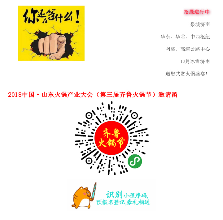 寒冬暖心 重磅亮相|2018中國(山東)火鍋產(chǎn)業(yè)大會暨第三屆齊魯火鍋節(jié)