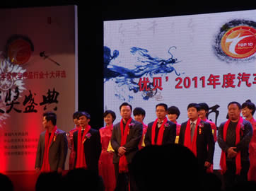 2012年2月13日,由慧聰網(wǎng)主辦,由中國(guó)汽車工業(yè)協(xié)會(huì)、中國(guó)汽車工程學(xué)會(huì)、中國(guó)汽車流通協(xié)會(huì)、中國(guó)國(guó)家標(biāo)準(zhǔn)制定委員會(huì)、中國(guó)汽車工業(yè)咨詢委員會(huì)、全國(guó)汽車服務(wù)高科技產(chǎn)業(yè)化委員會(huì)、廣州市汽車配件用品行業(yè)協(xié)會(huì)、河南省汽車用品業(yè)商會(huì)、哈爾濱汽車用品服務(wù)業(yè)商會(huì)、安徽省汽車用品行業(yè)商會(huì)、湖南省汽車用品行業(yè)商會(huì)、上海市工商聯(lián)汽車配件及用品業(yè)商會(huì)、北京汽車用品商會(huì)、中國(guó)電子商會(huì)汽車電子專業(yè)委員會(huì)協(xié)辦的汽車用品“奧斯卡”--2011年度(第八屆)中國(guó)汽車用品行業(yè)十大評(píng)選頒獎(jiǎng)盛典在北京釣魚(yú)臺(tái)國(guó)賓館盛大舉辦。