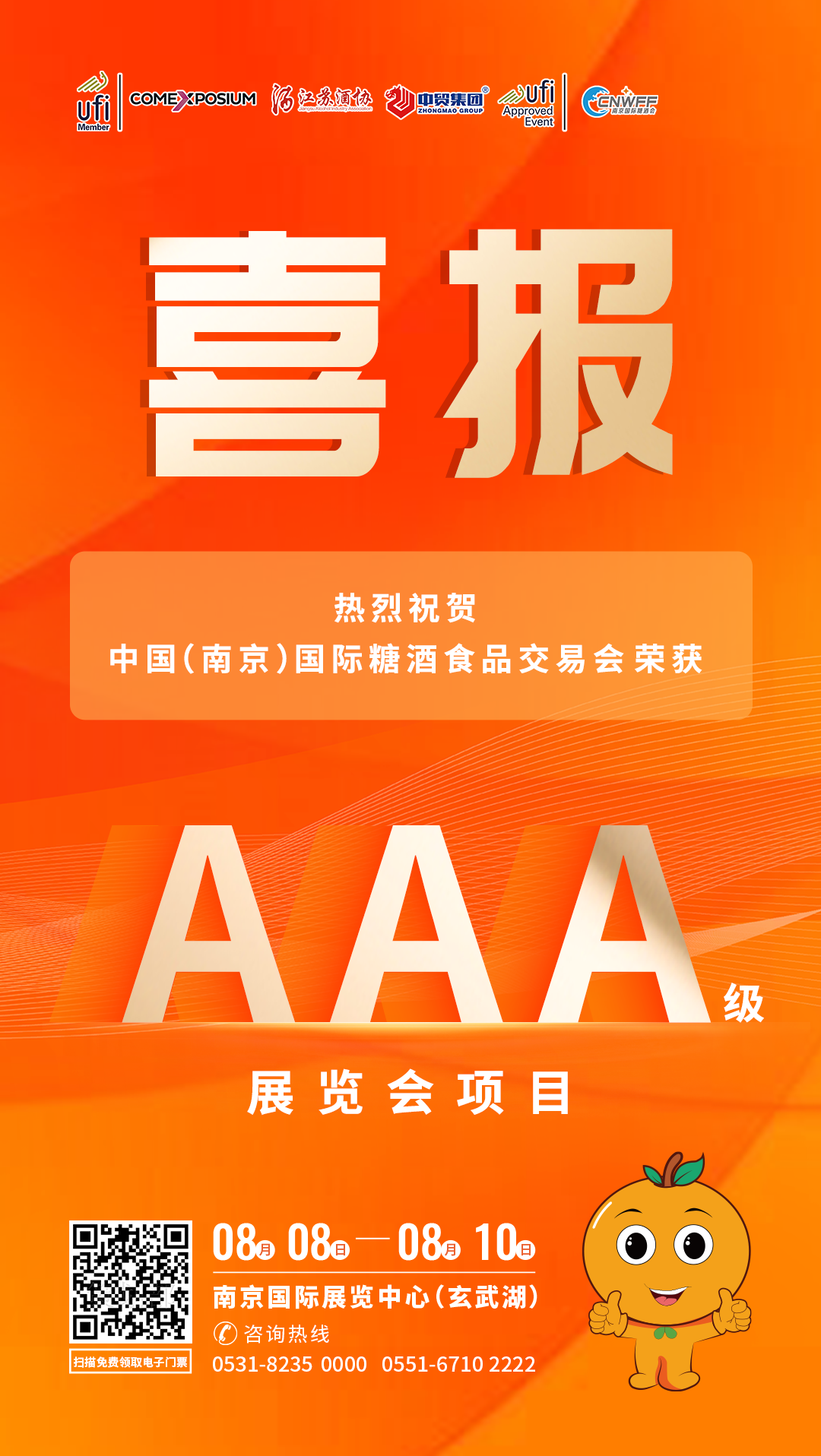7月16日,江蘇省會(huì)議展覽業(yè)協(xié)會(huì)發(fā)布了江蘇省專業(yè)展覽會(huì)等級(jí)評(píng)定結(jié)果公示,中國(guó)(南京)國(guó)際糖酒食品交易會(huì)(簡(jiǎn)稱南京糖酒會(huì))榮獲3A展覽等級(jí)。
